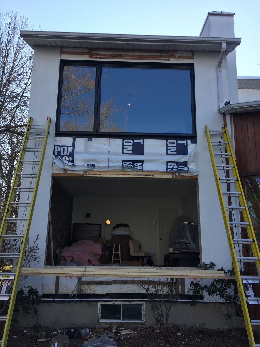 Agrandissement de fenêtres d'une maison au bord de l'eau.